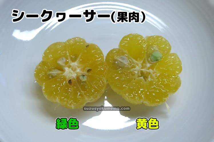 ……色味が違うこの2種類のシークヮーサー、果肉の色や味に違いはあるのでしょうか?