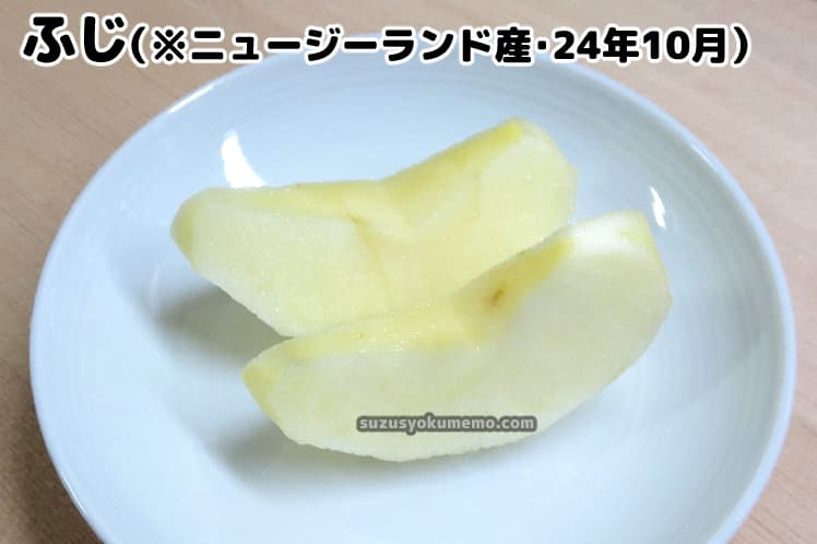 りんごは古くなってくると酸味もひかえめになっていきますが、全体的な風味も落ちて味がぼけるし、食感もやわらかくほろほろになっていくので『あっ、これはもう古くなってるな』とわかります。今回の場合は特に味のぼけた感じもなく、食感はしっかりシャキシャキサクサクで果汁もたっぷりあったので劣化はしていないかな…と思います。