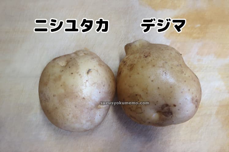 見た目は男爵いも寄りのデジマですが、男爵いもがほっくり系の芋である一方、こちらはねっとり系。メークイン等のように煮物や汁物に向いています。