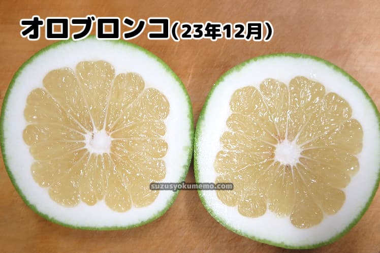 個人的な感想として、どうも他の文旦やグレープフルーツなどの似たタイプの柑橘と比べるとちょっと食べづらいように感じます。原因は『果肉のやわらかさ』。いくつか購入してみましたがどれもやわらかく崩れやすい。