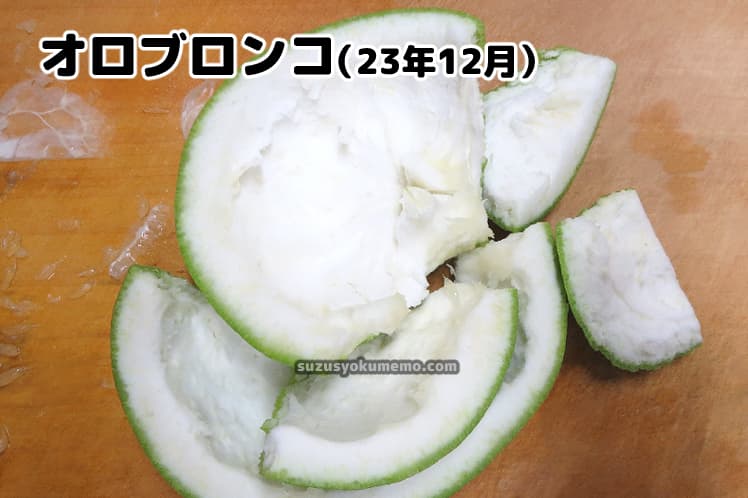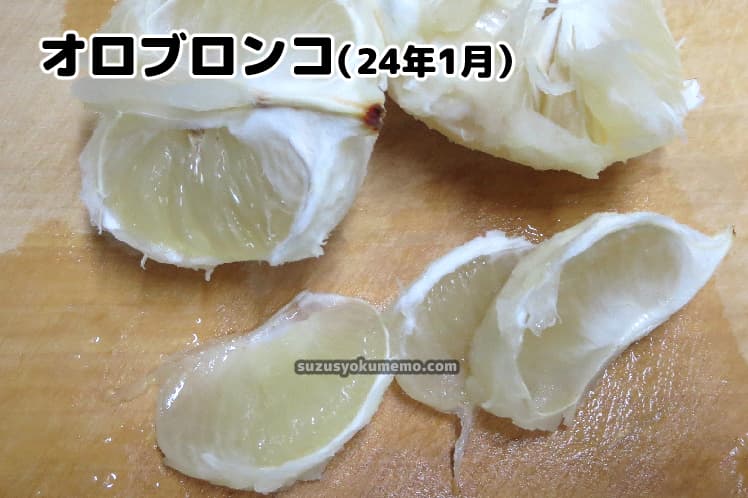 ただ、他2つの方法と比べるといちばん苦みを感じなかったのはこの方法です。おそらく皮やワタ部分が口に入ることが無いからであると思われます(薄皮を剥く方法だとどうしても外側の皮がちょっと残りやすいのでそれが原因で苦みが生じる)。