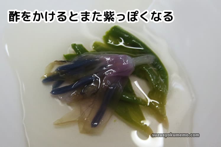 酢をかけるとまた紫色に変わります。