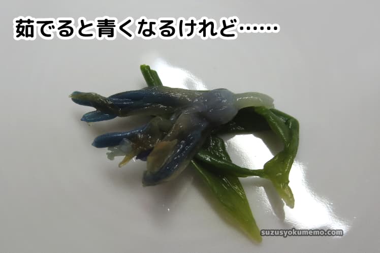 茹でると、花の色は紫から青色になります。ちょっと暗いイメージになってしまうかもしれません。