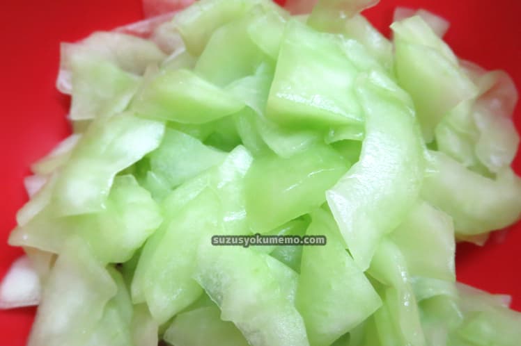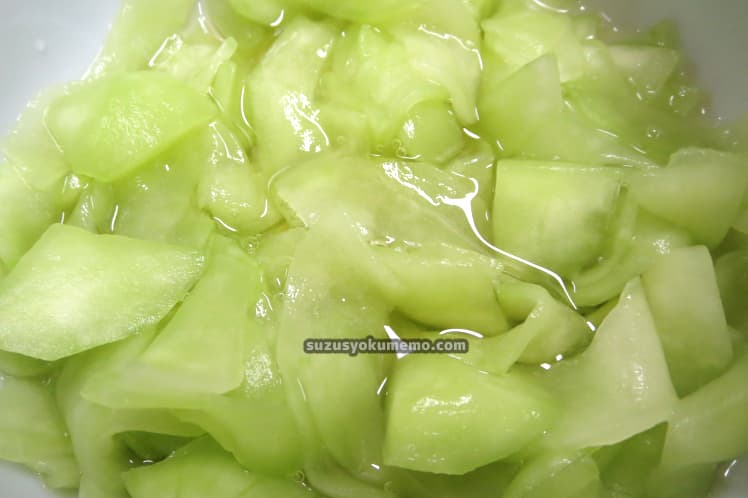 ここまで漬物にすることを前提で書きましたが、漬物はあまり食べないよ!という人もいるでしょう。きゅうりみたいなものだし味にクセもほぼ無いので、他の料理に使っても問題無いのではと思い、試してみることにしました。